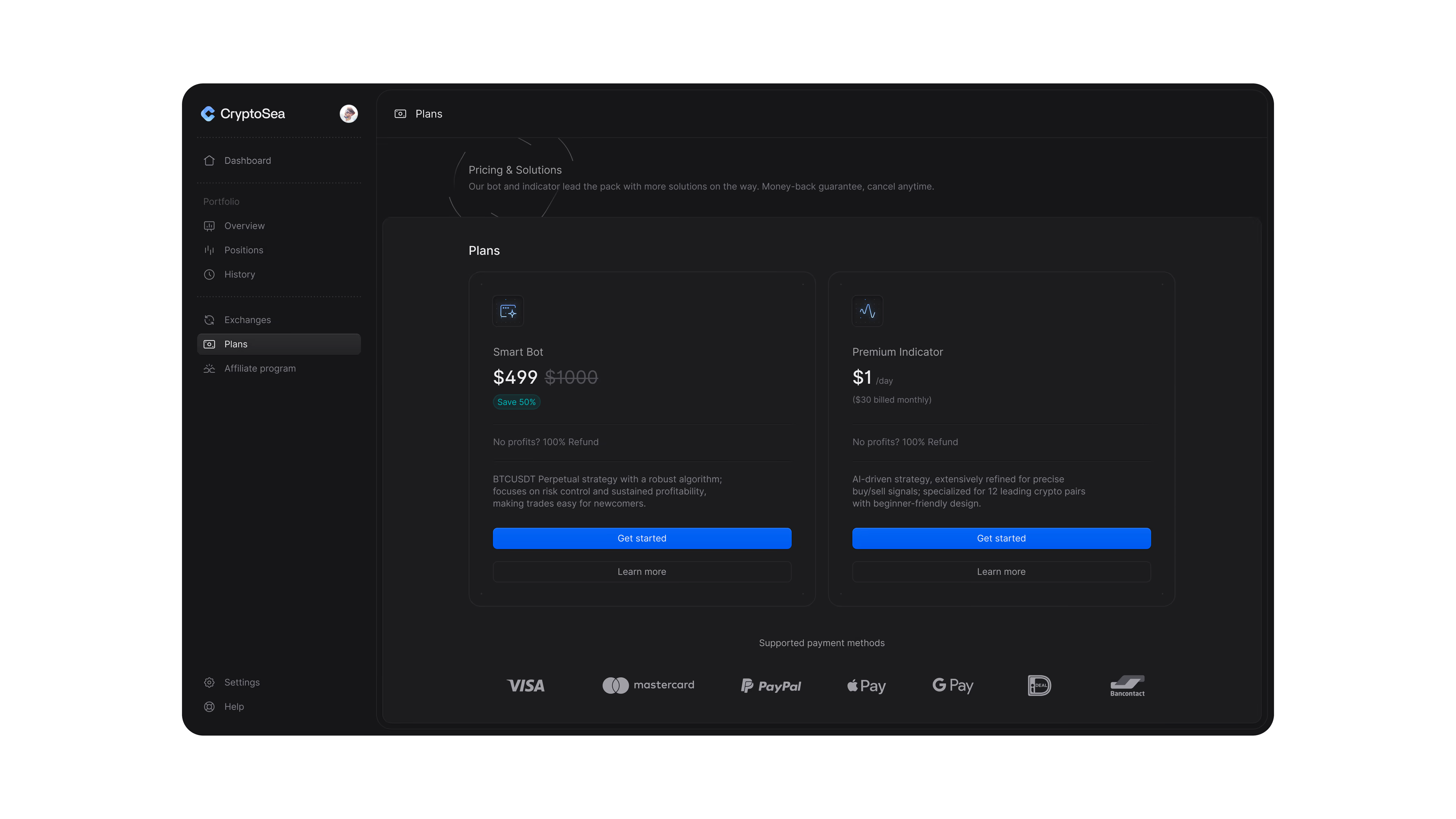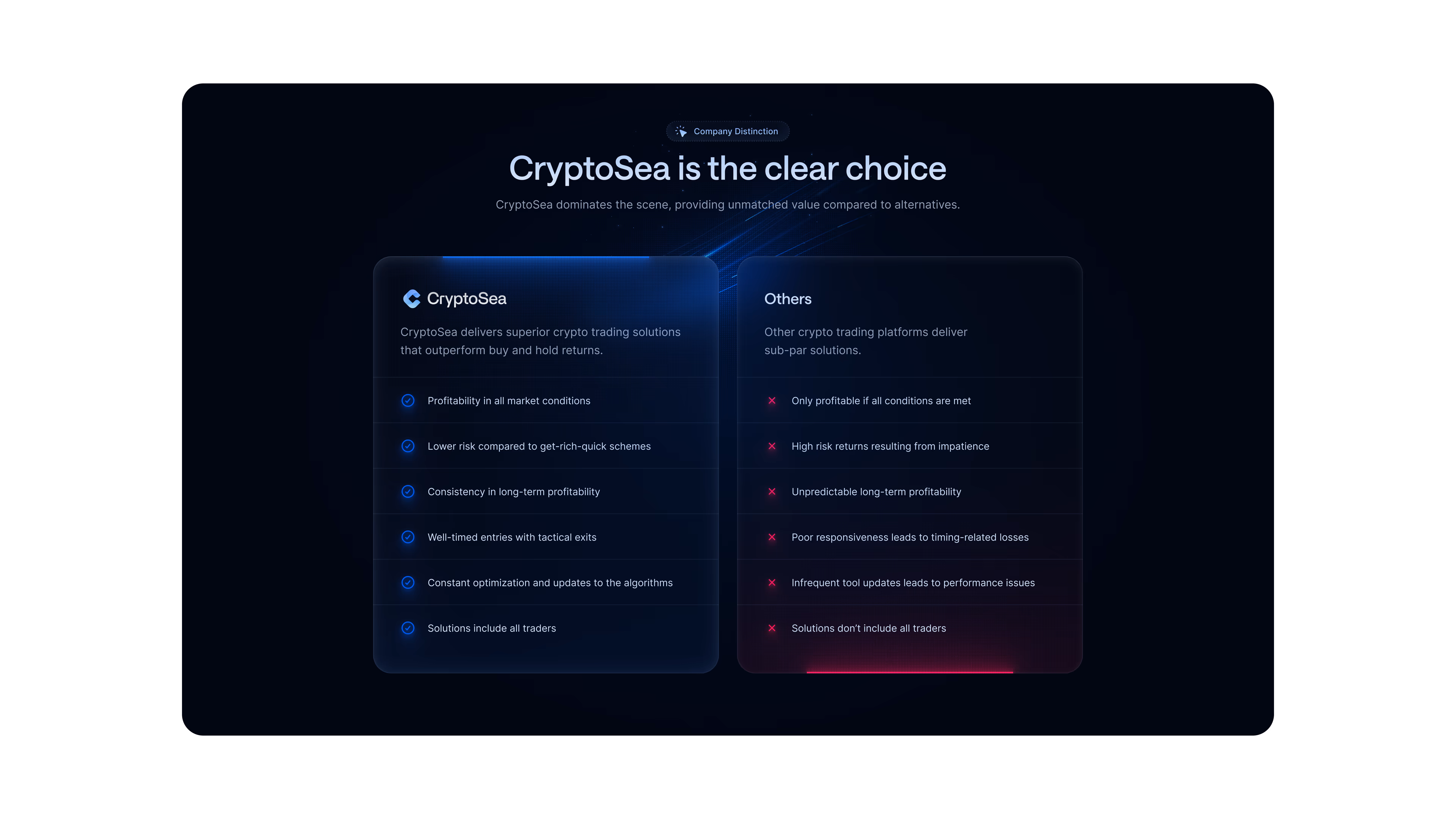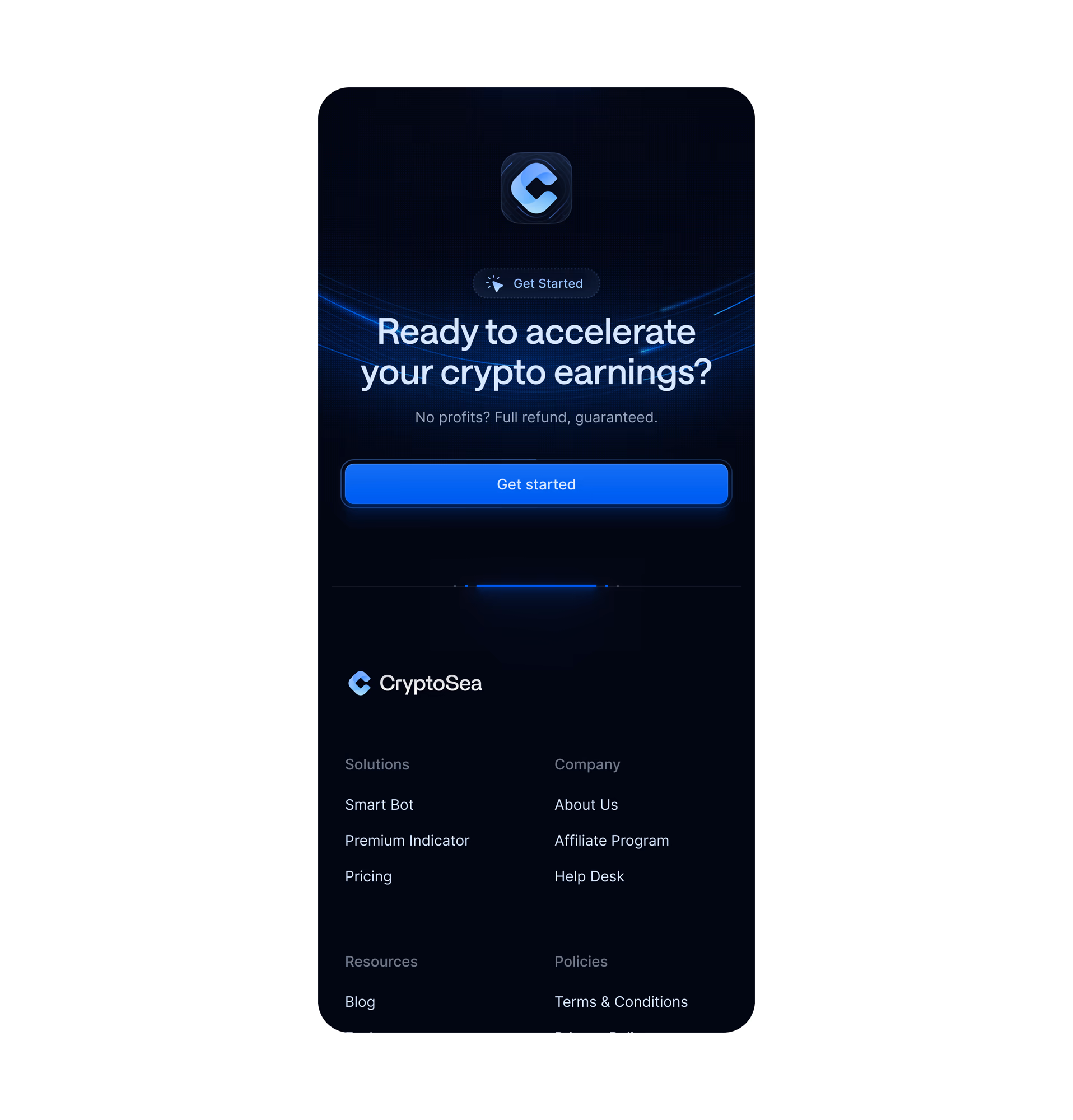 We partnered with Cryptosea on a full-scope design project — including brand identity, product design, and a new marketing site for their automated trading platform.