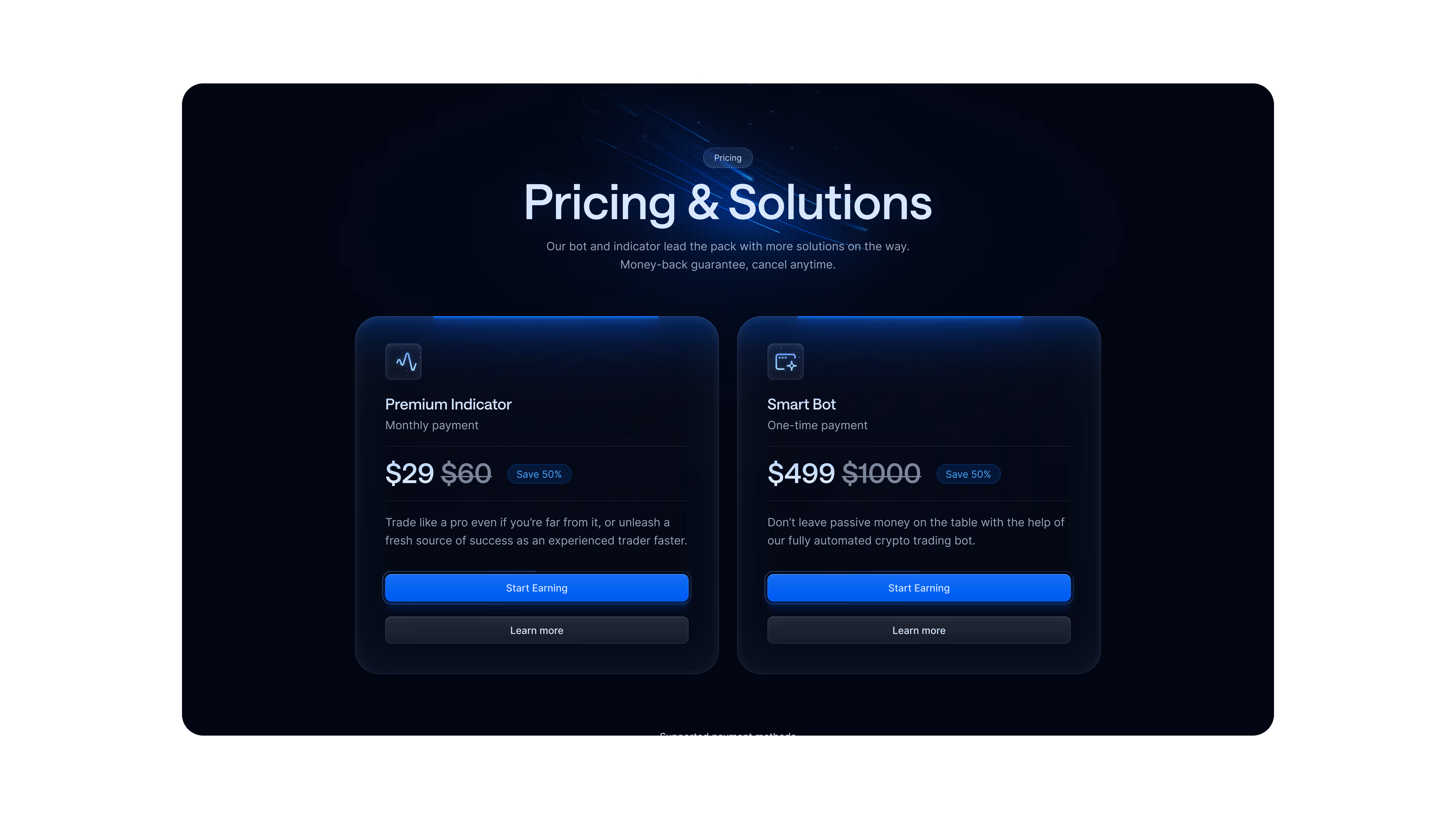 To reflect the technical depth of the product, we leaned into a dark visual palette with glowing accents. The result is a bold, high-contrast identity that feels sleek, modern, and built for serious traders.ce.