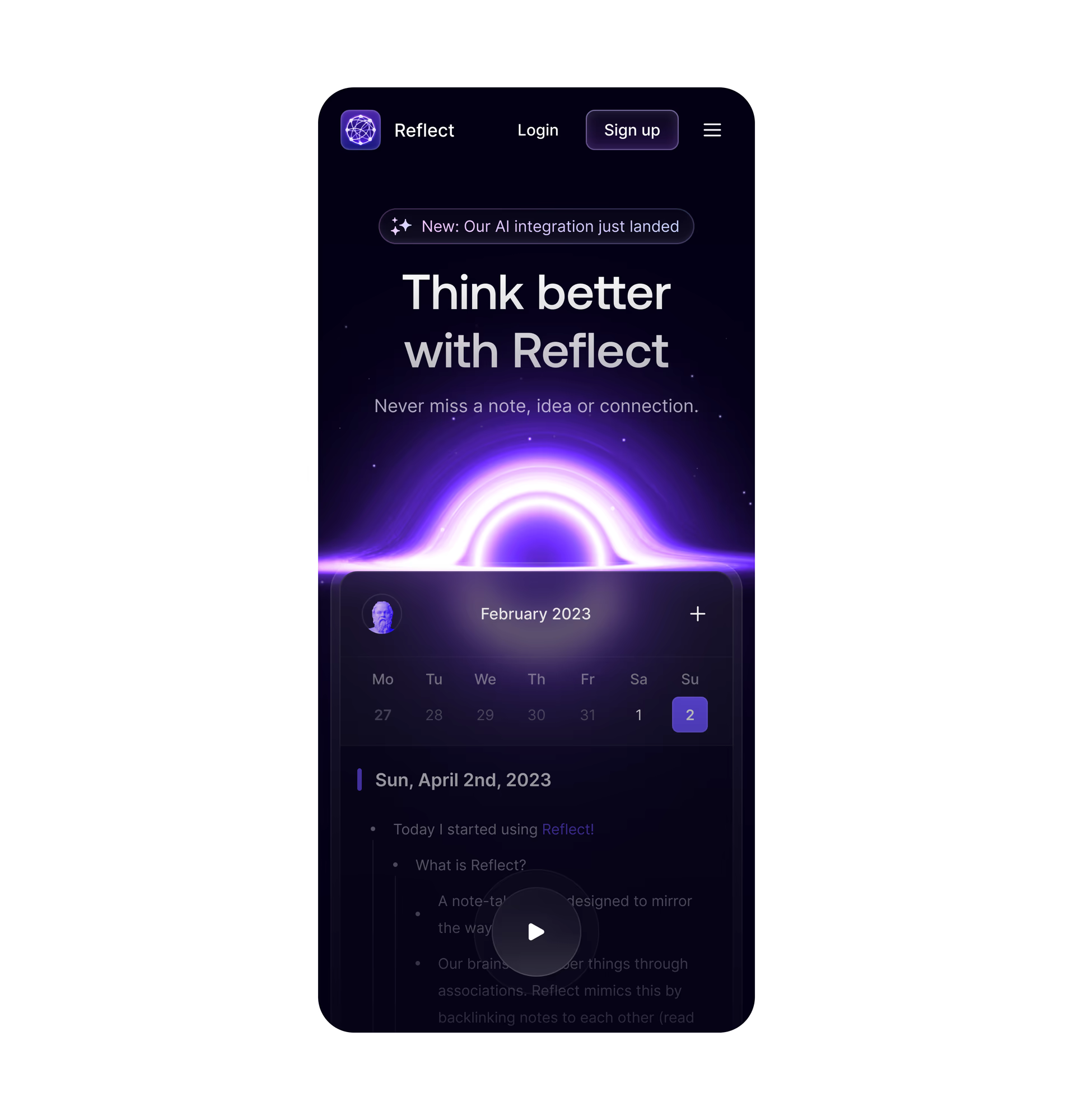 We partnered with Reflect to design a new landing page that reflects the simplicity and speed of their note-taking experience.
